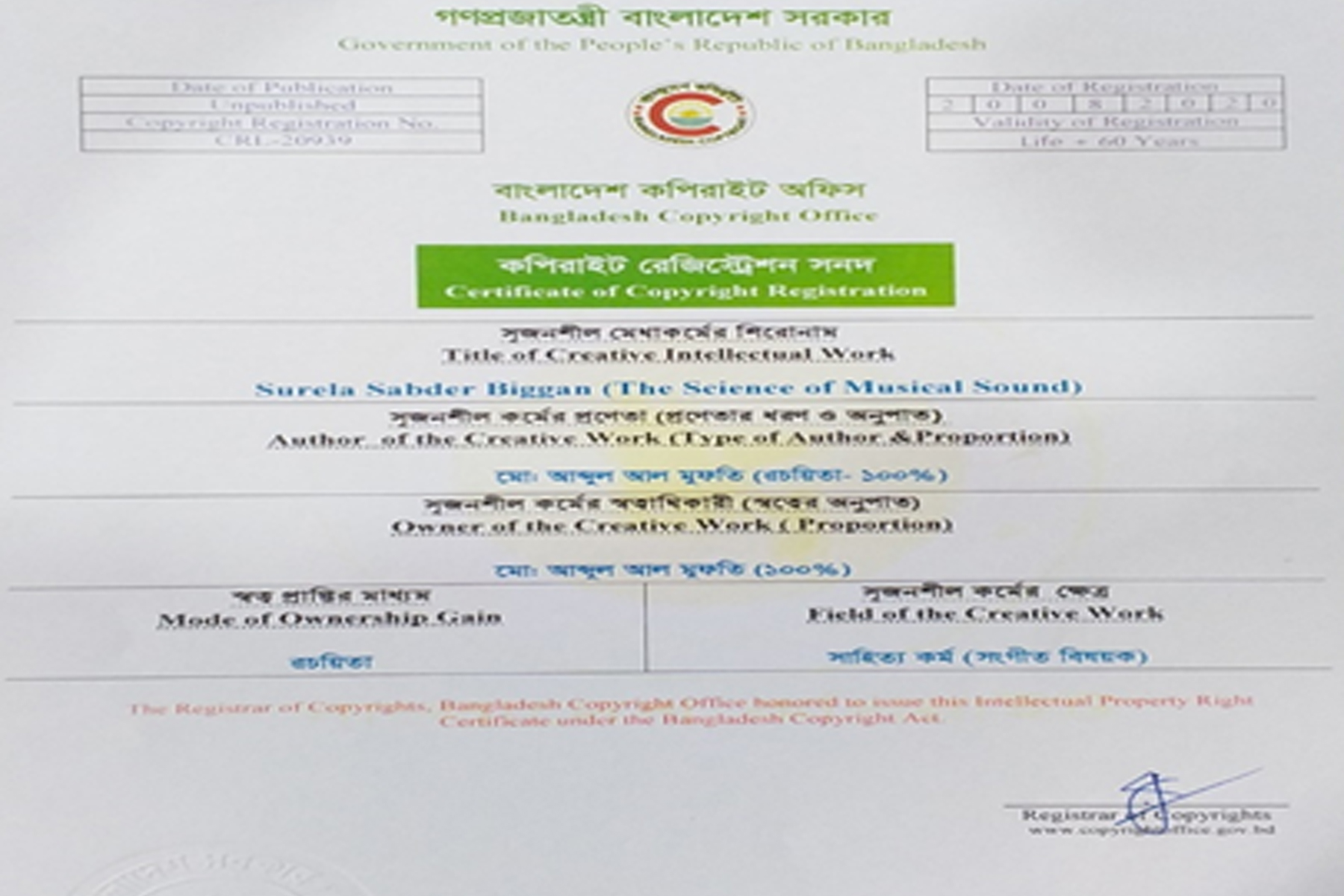 In 2023, Md. Abdul Al Mufti, Founder & Chairperson, SCIENCE MUSIC YOUTH ALLIANCE was honored with the Best Youth Organizer Award by the department of youth development, Naogaon. The award was given in recognition of this innovative music-based initiatives to promote scientific thinking and his outstanding efforts to engage youth in positive social activities.